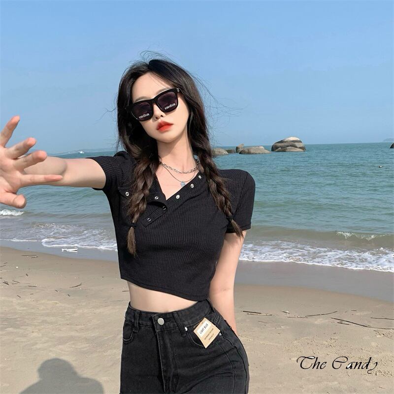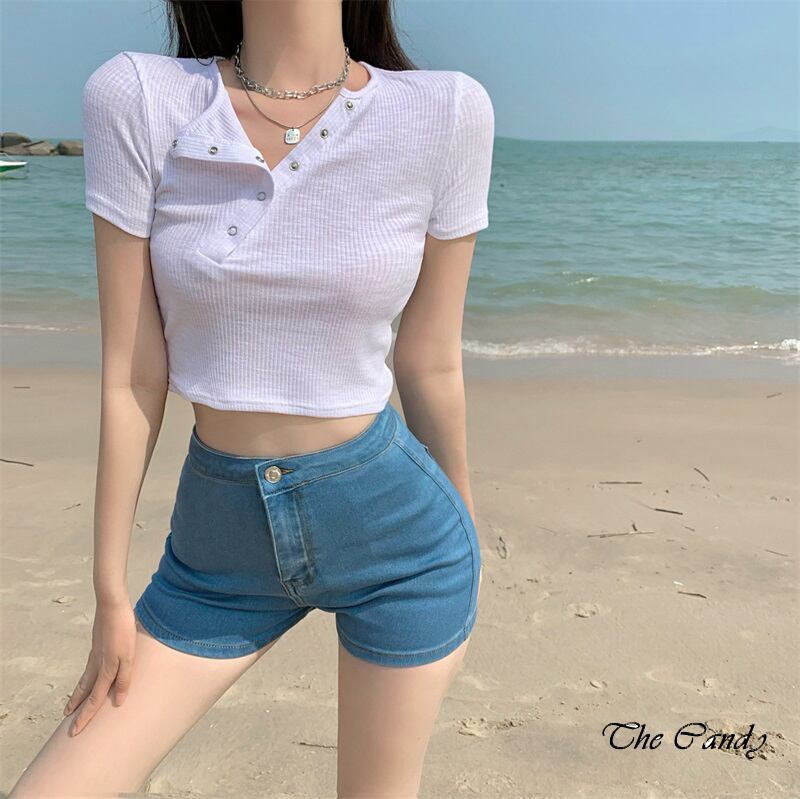 サマーカラーボタンニットトップス Tシャツ レディース 夏物 ナナファッション4732855244
