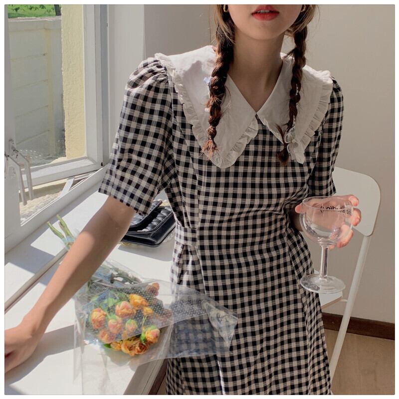 サマースタイルスタンダードカラードレス レトロ 夏物 ステッチ ナナファッション19169776287