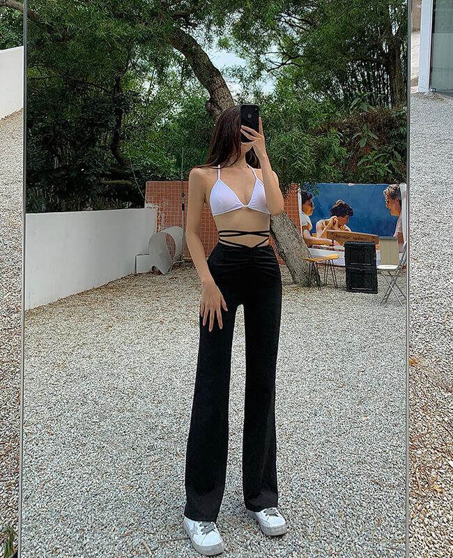サマー薄手ハイウェストウェストストラップ パンツ カジュアルレディース 夏物 ナナファッション31348824215