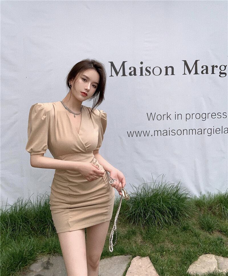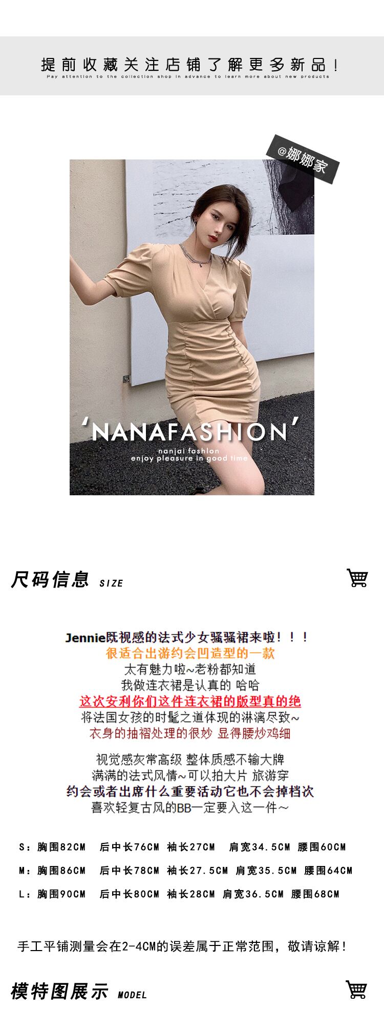 スカート Vネックプリーツスリーブニットドレス サマー 大人ガーリー スウィート キュート カジュアル 夏物 ナナファッション59836431632