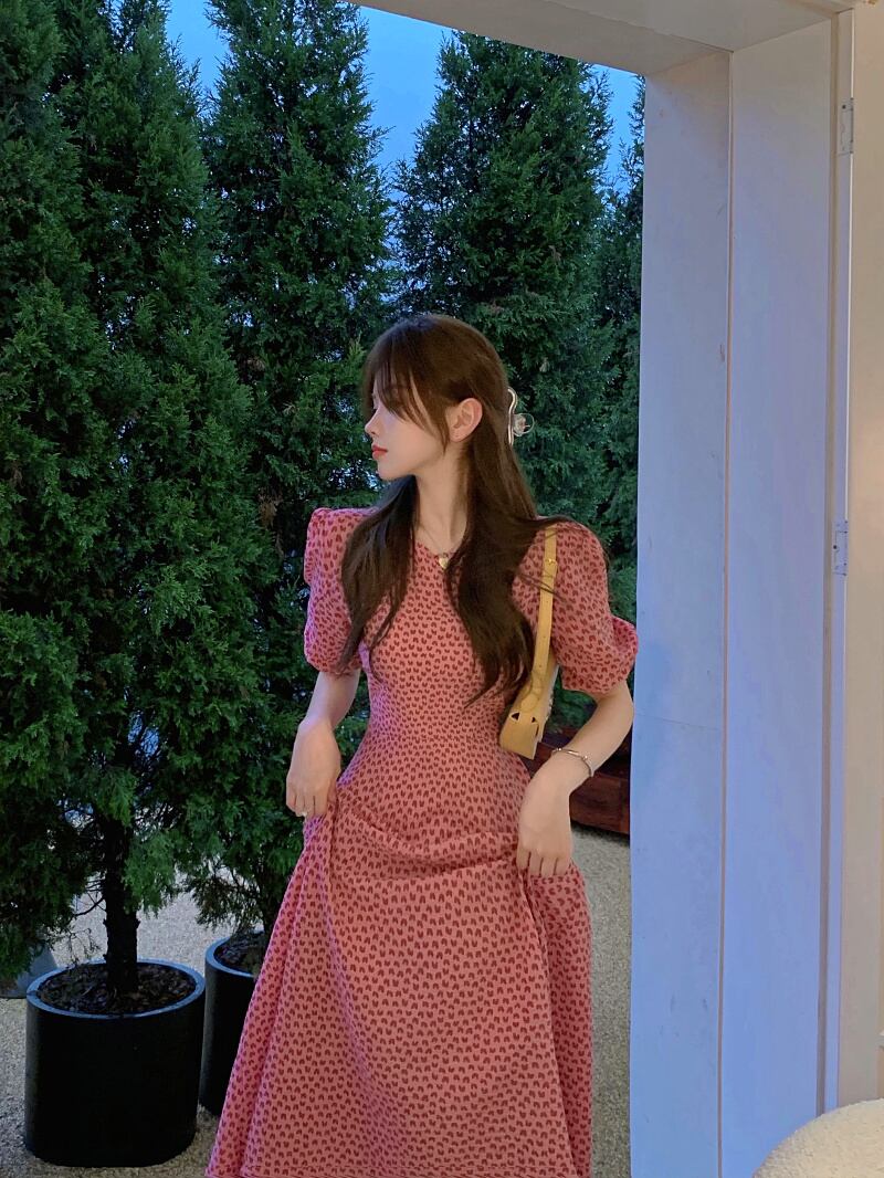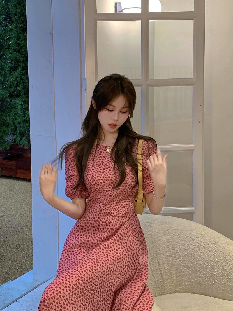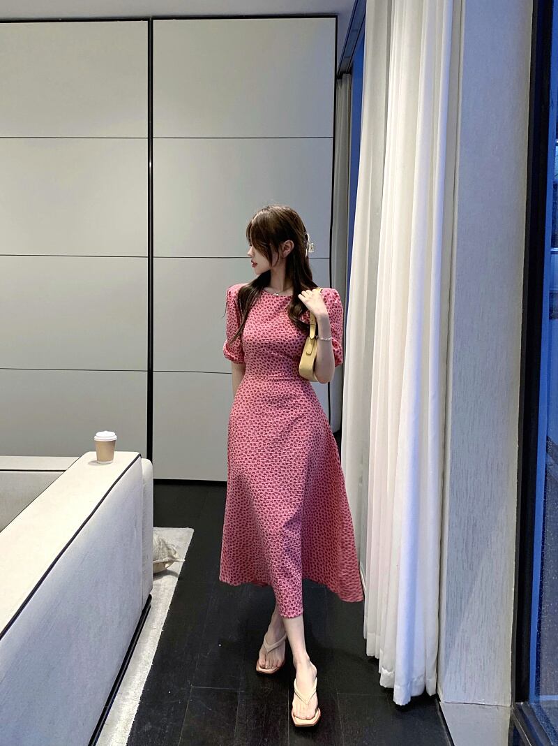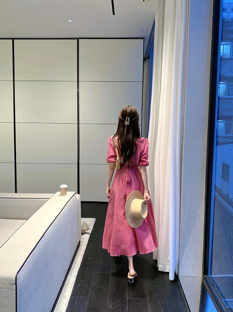 スリーブプリント柄薄手ウェストドレス レース 大人ガーリー スウィート キュート カジュアル レースアップ ナナファッション78352793654