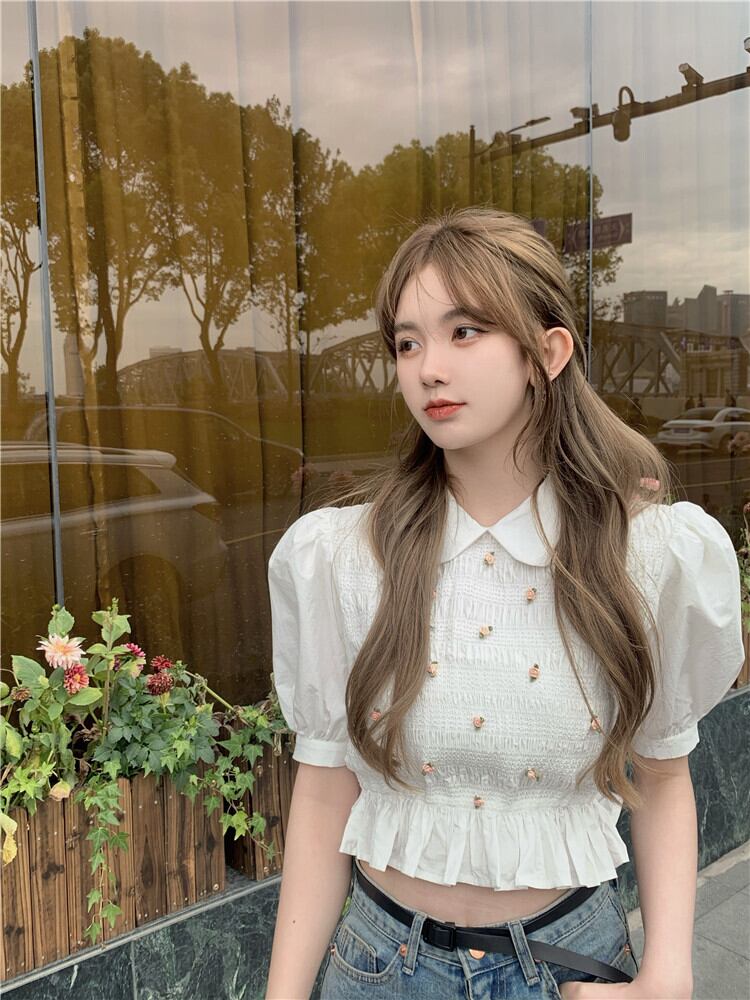 ブラウス サマーショートスタイルスリムカラーシャツ 大人ガーリー スウィート キュート カジュアル 夏物 ナナファッション11790960862