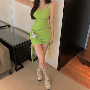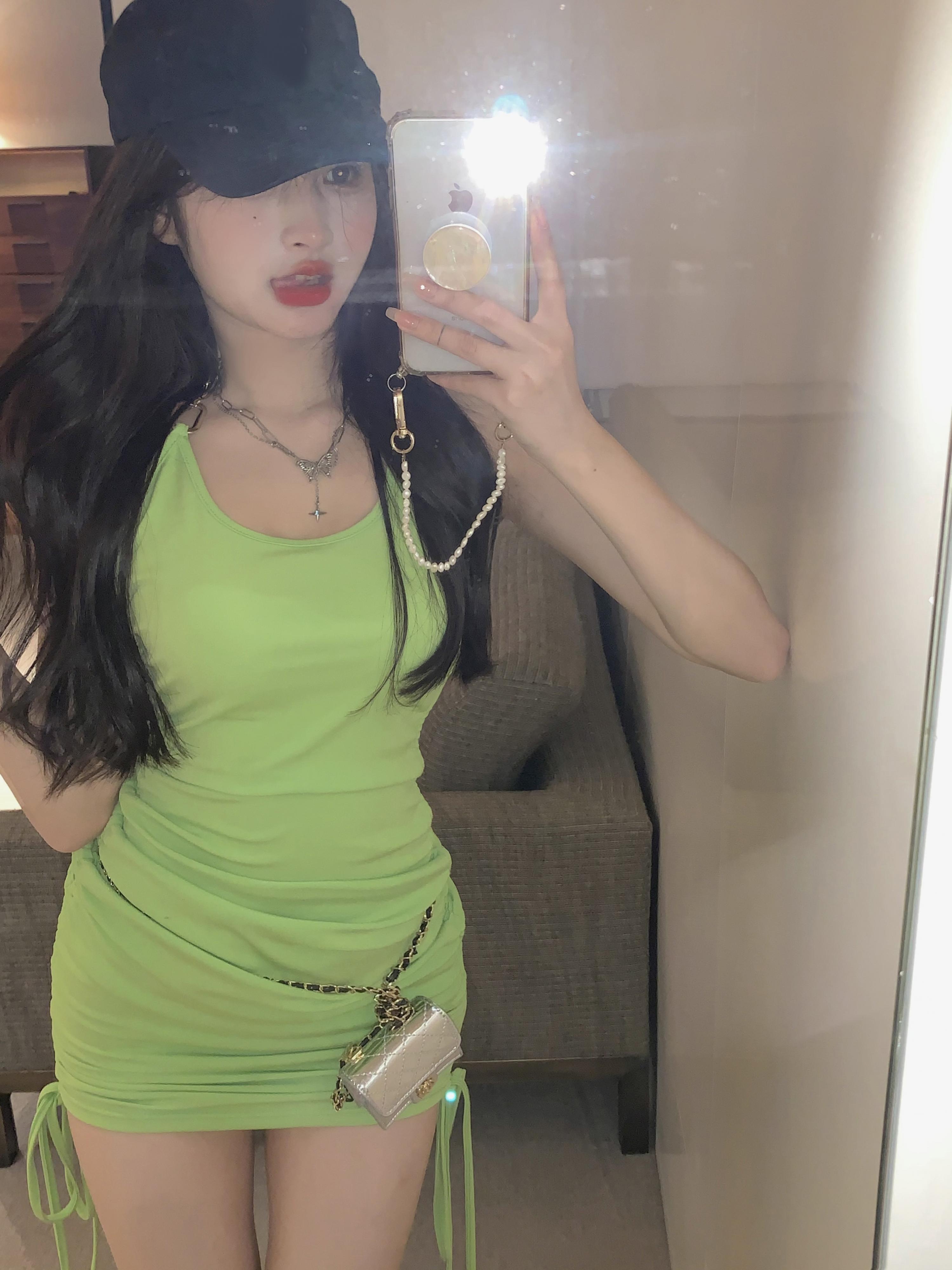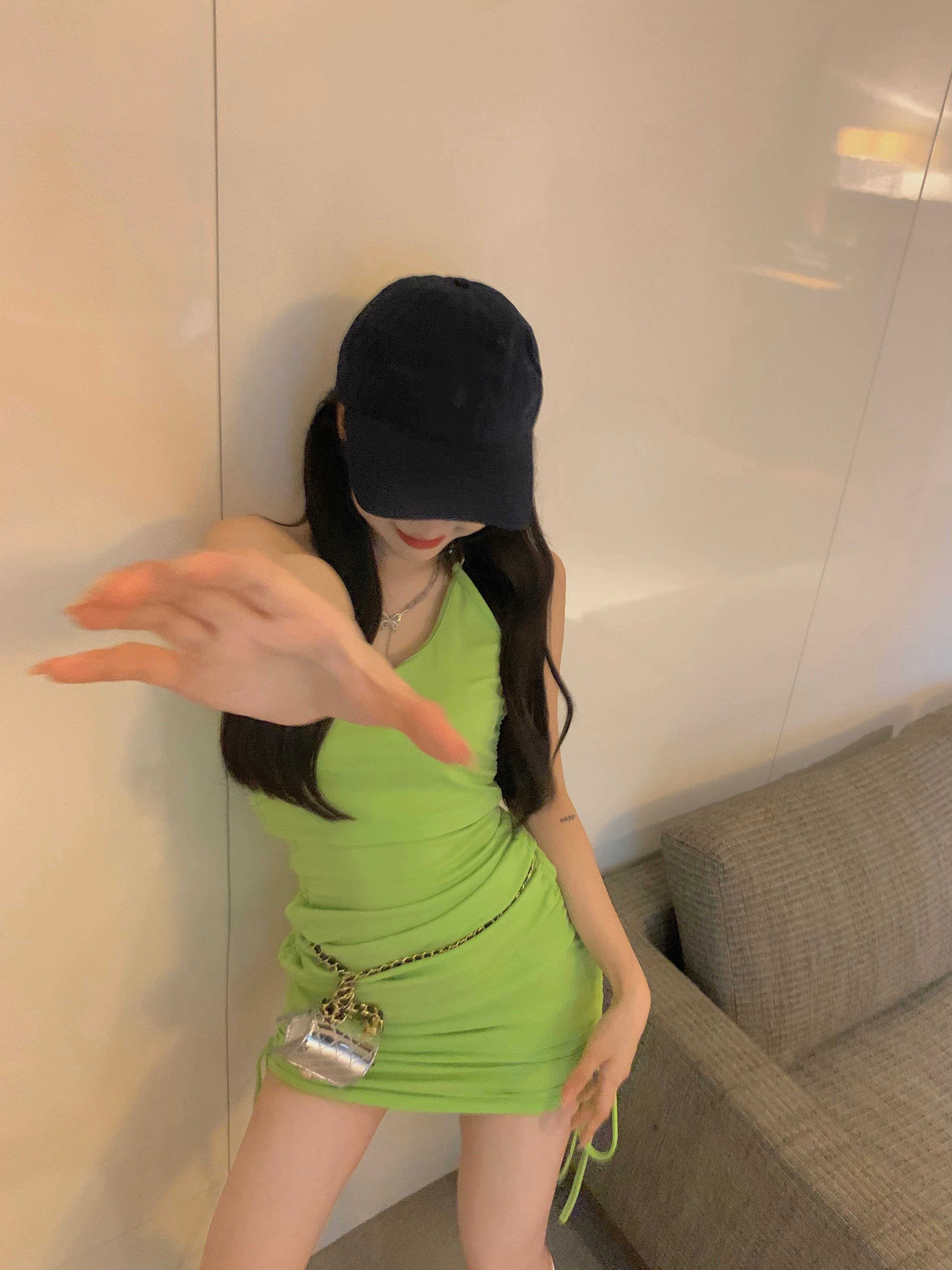 ホルタードレス サマースリム薄手ショートスカート 夏物 グリーン ナナファッション21838505732