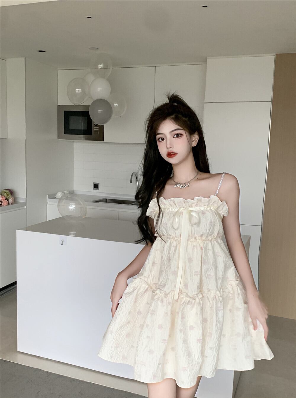 プリントパールドレス リボン 大人ガーリー スウィート キュート カジュアル スカート 真珠 ナナファッション91302459581