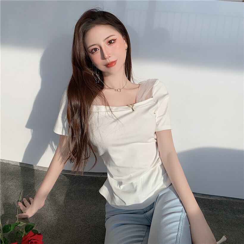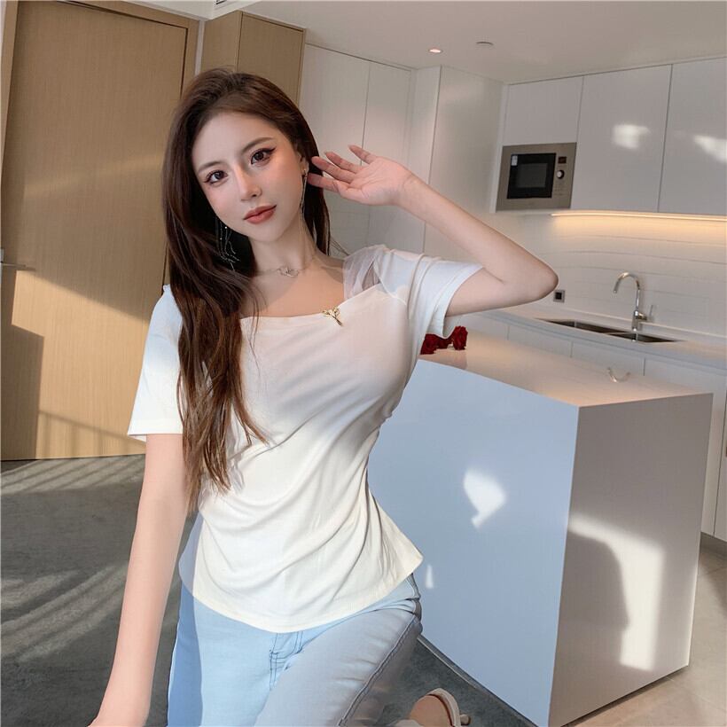 メッシュTシャツ シャツ サマースタイル 夏物 スクウェア ステッチ ナナファッション72678197347
