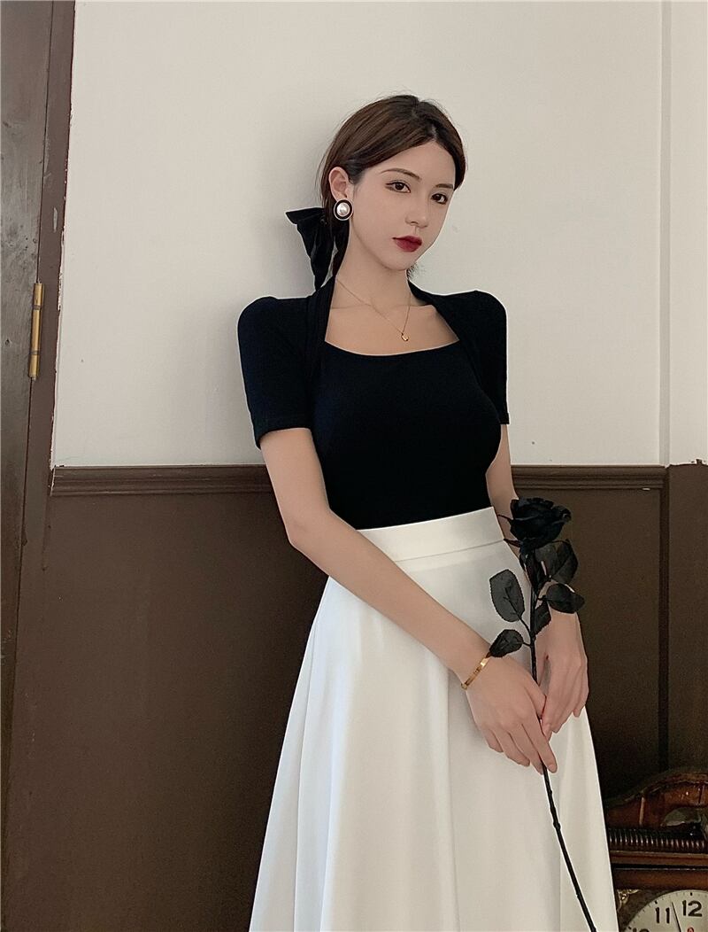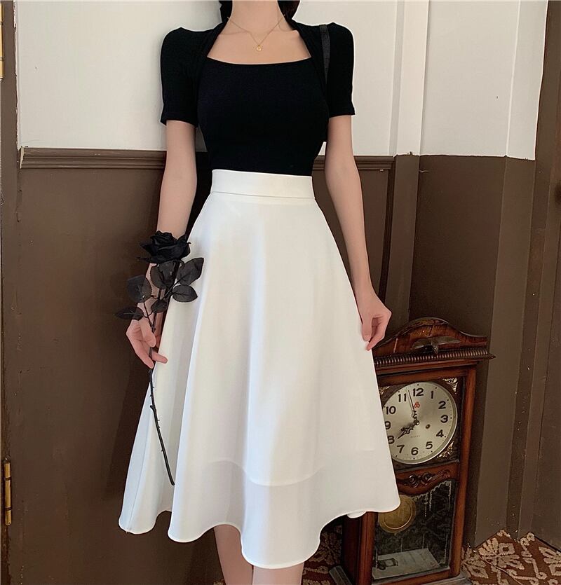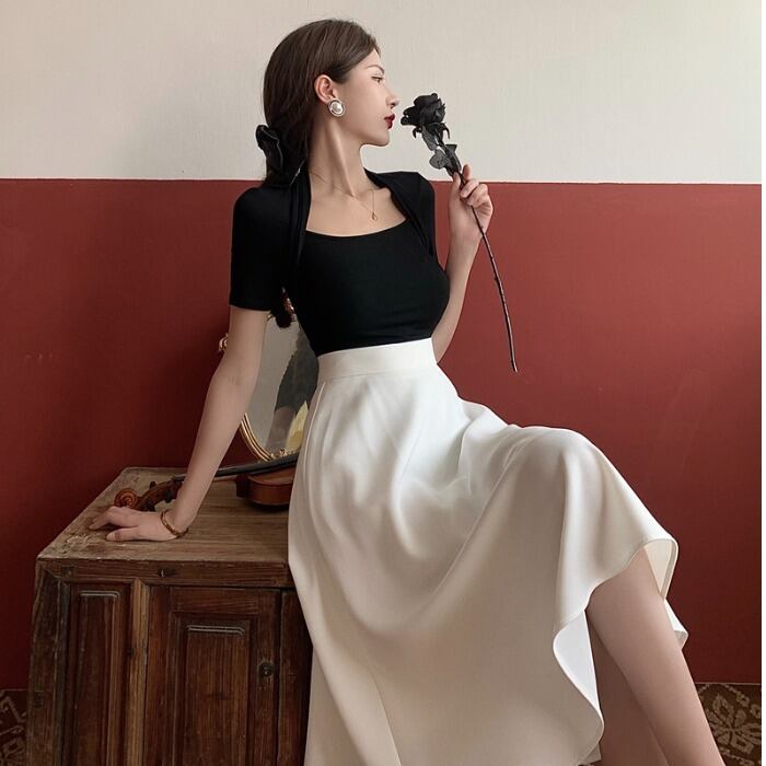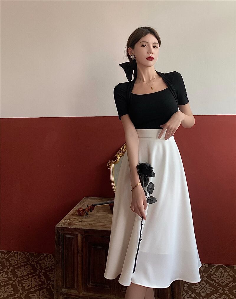 色:ブラックトップ,白いスカート