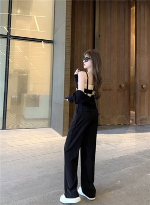 サマー薄手ハイウェストルーズカジュアルパンツ ブラックロング 夏物 ナナファッション50737443129