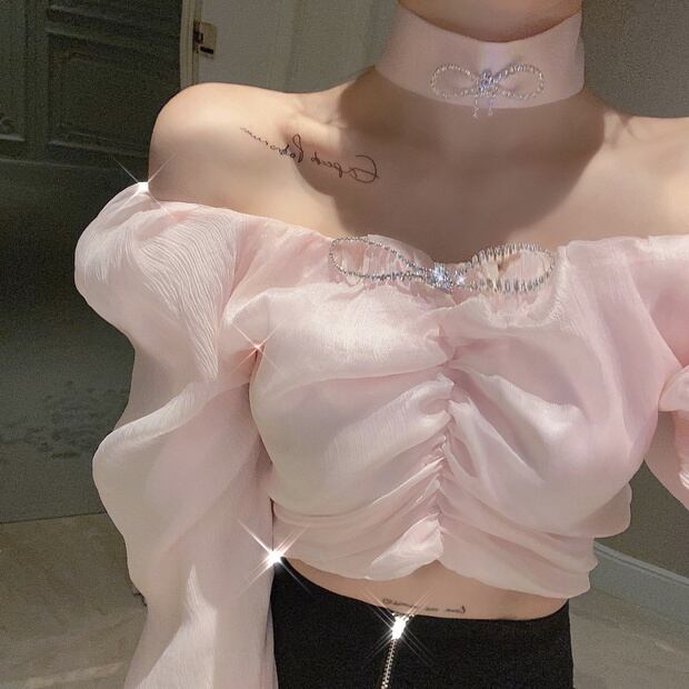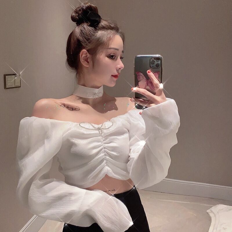 サマースタイルスリーブシフォンシャツ ショートホワイトトップス 夏物 ナナファッション11371754511