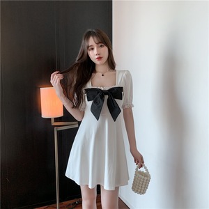 ウェストサマーAラインドレス リボン 大人ガーリー スウィート キュート カジュアル 夏物 ナナファッション81237804496