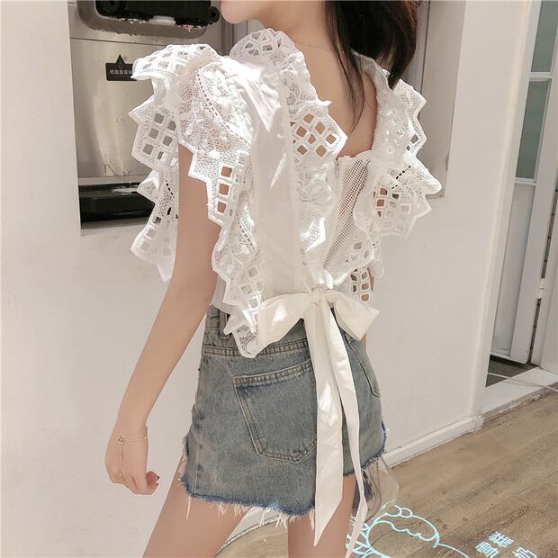 シフォンシャツ サマースタイルバックメッシュショートノースリーブブラウス レディース 大人ガーリー スウィート キュート カジュアル 夏物 ナナファッション88875403718