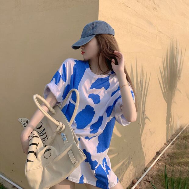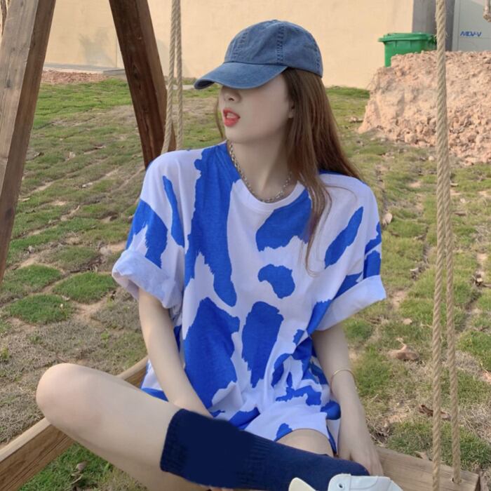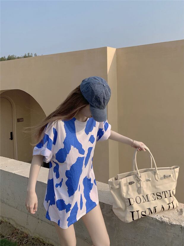 プリント柄ルーズ薄手Tシャツ サマートップス 夏物 ナナファッション60296878235
