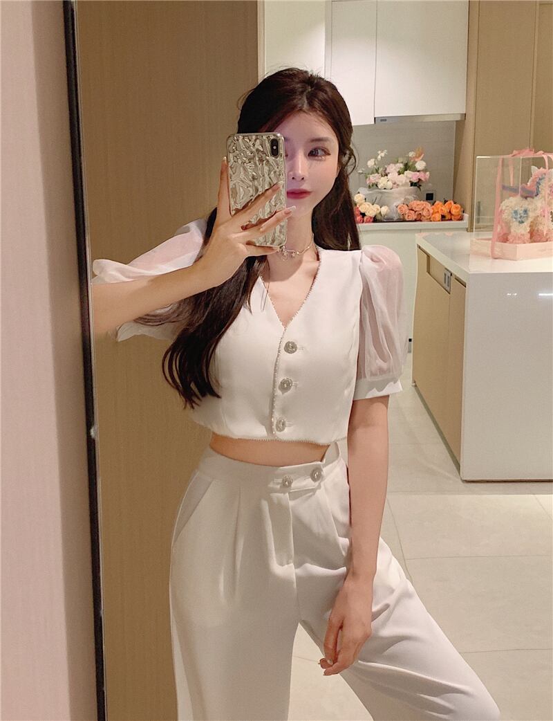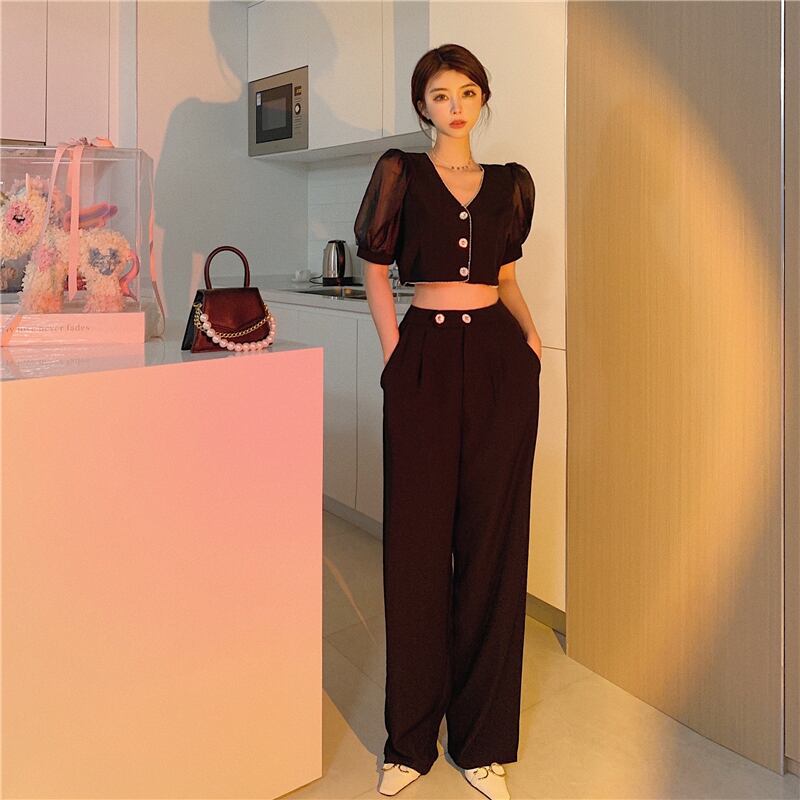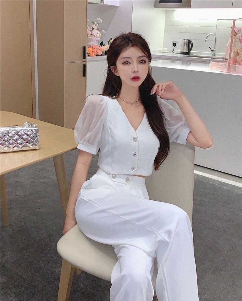 サマースタイルスリーブトップス ハイウェストウェストパンツ ストリート 夏物 ナナファッション96520053050