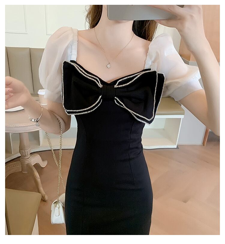 サマースカート スタンダードリボンスリーブドレス レトロ 夏物 スクウェア ナナファッション10901186857