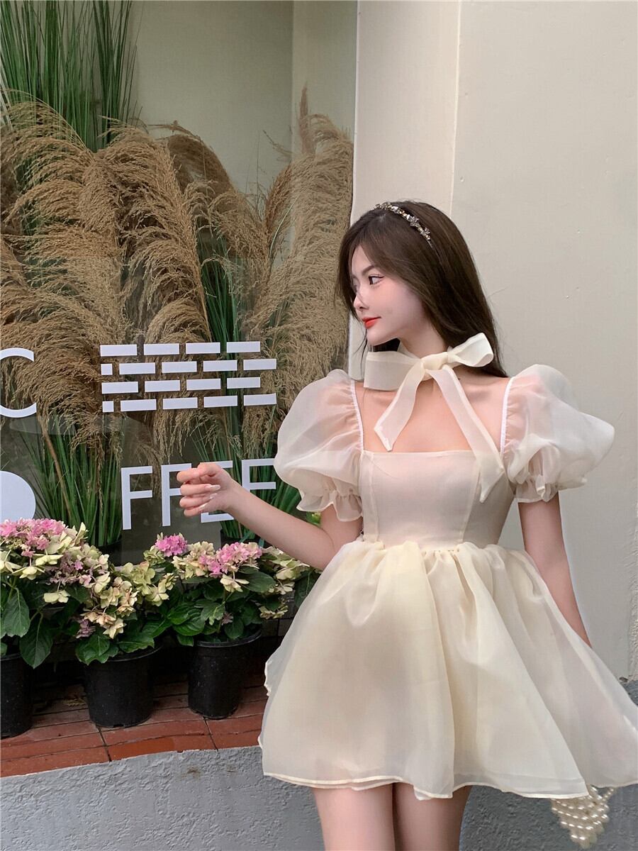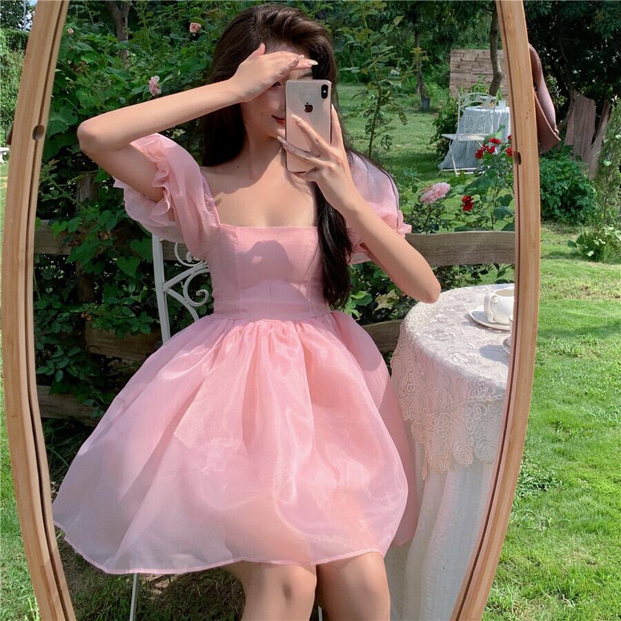 ドレス サマースカート スリーブウェストメッシュ ピンク ストリート 大人ガーリー スウィート キュート カジュアル 夏物 スクウェア ナナファッション76150570763