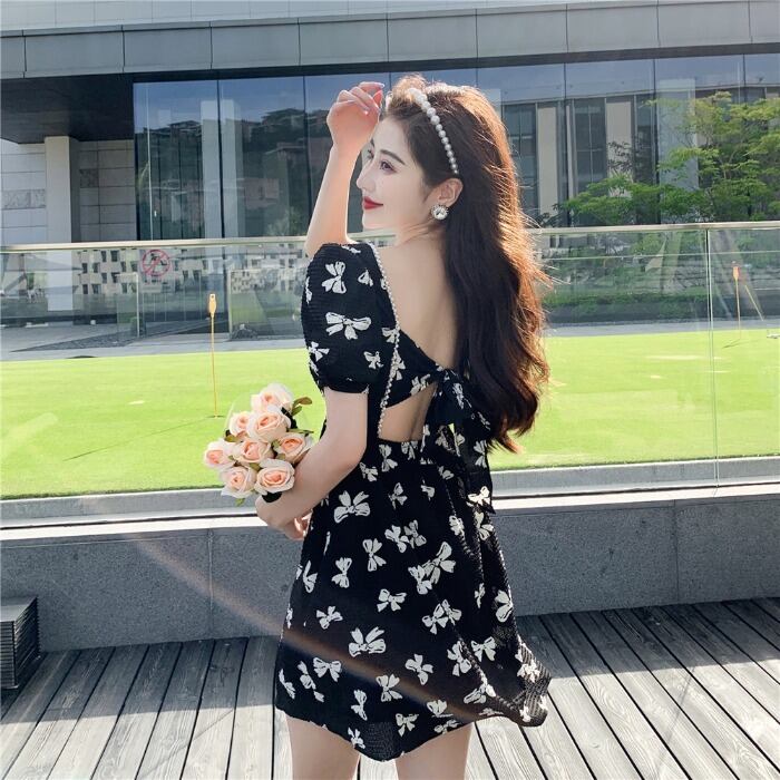 スタイルバックレスドレス サマーリボンAラインスカート 夏物 ナナファッション5590746764