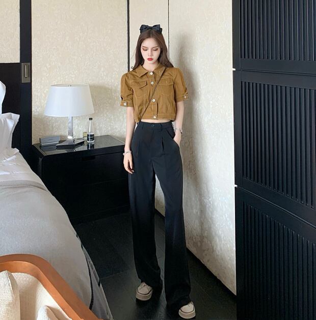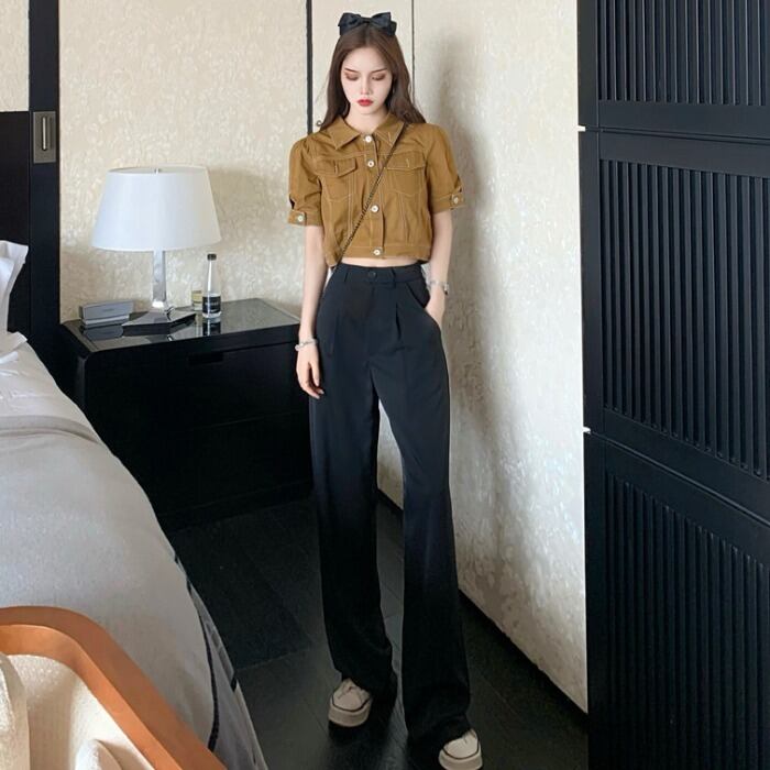 レッドサマートップス ウェストワイドレッグパンツ レディース ストリート 夏物 ワイドパンツ ナナファッション50490232849