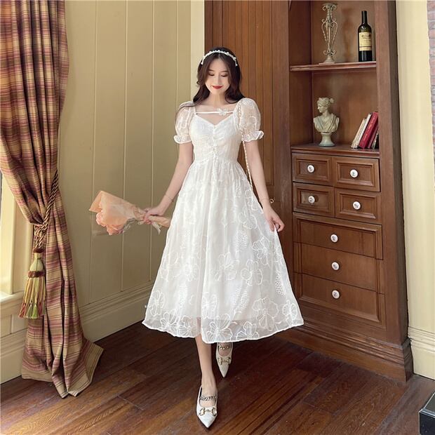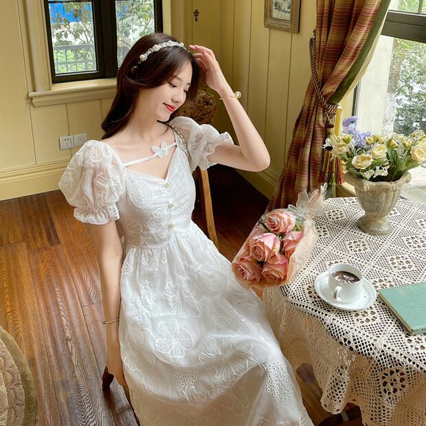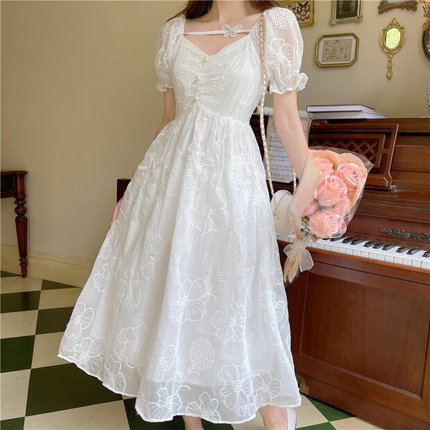 スタンダードドレス ウェストButterflyデザイン ロングスカート サマー レトロ 夏物 ナナファッション97860959238