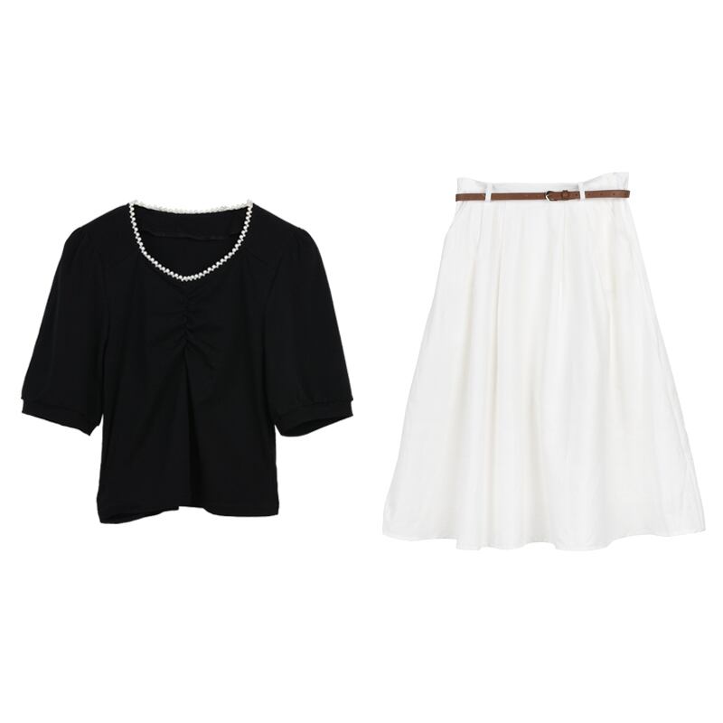 スリムTシャツ トップス ハイウェストスカート サマーレディース 夏物 ナナファッション17040276198
