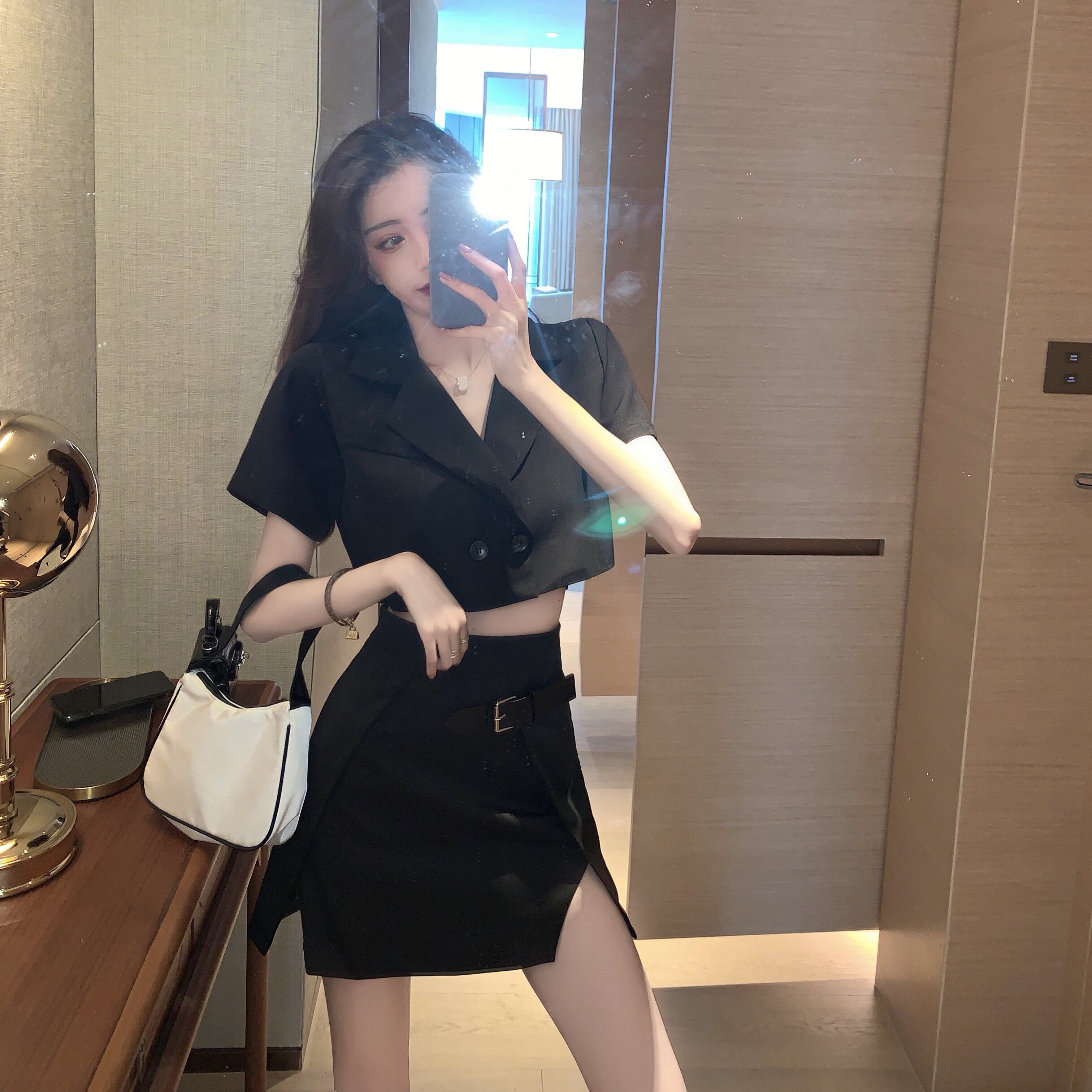 色:スーツジャケット,黒スカート