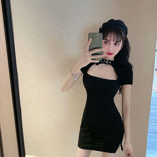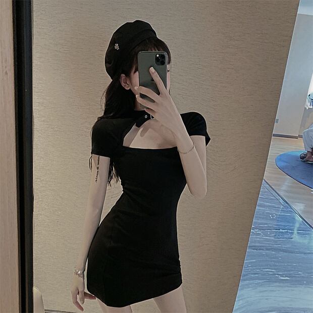 ドレス ワンピース スリム薄手ブラックショートスカート レディース スプリング 春物 サマー 夏物 ナナファッション6420987704