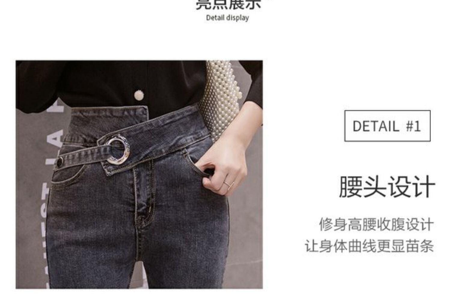 パンツ サマーレッドハイウェストウェストスリムブラックジーンズ 夏物 ナナファッション31424270250
