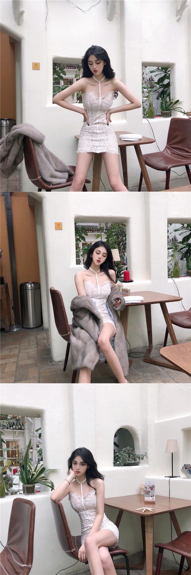 スプリングサマーレーストップス スリムホワイトドレス 春物 夏物 スリムヒップ ナナファッション51586512924