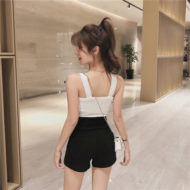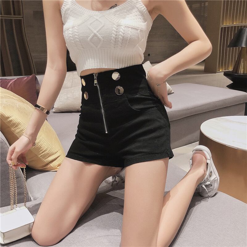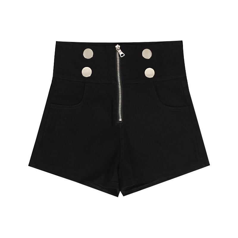 ブラックウェストジッパーショーツ サマー薄手パンツ ハイウェスト 夏物 ブルマー ナナファッション59696431679