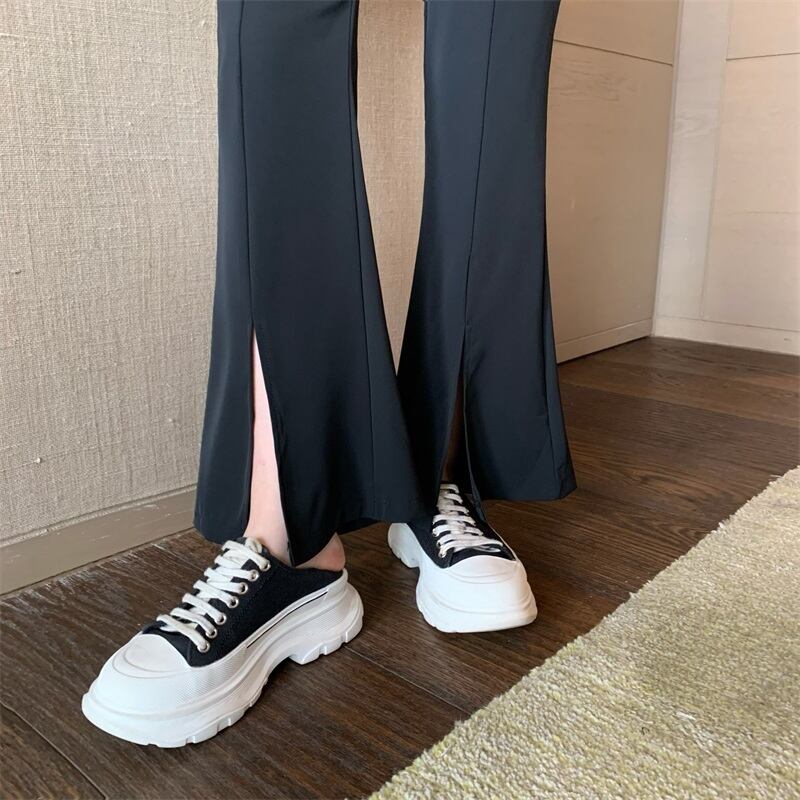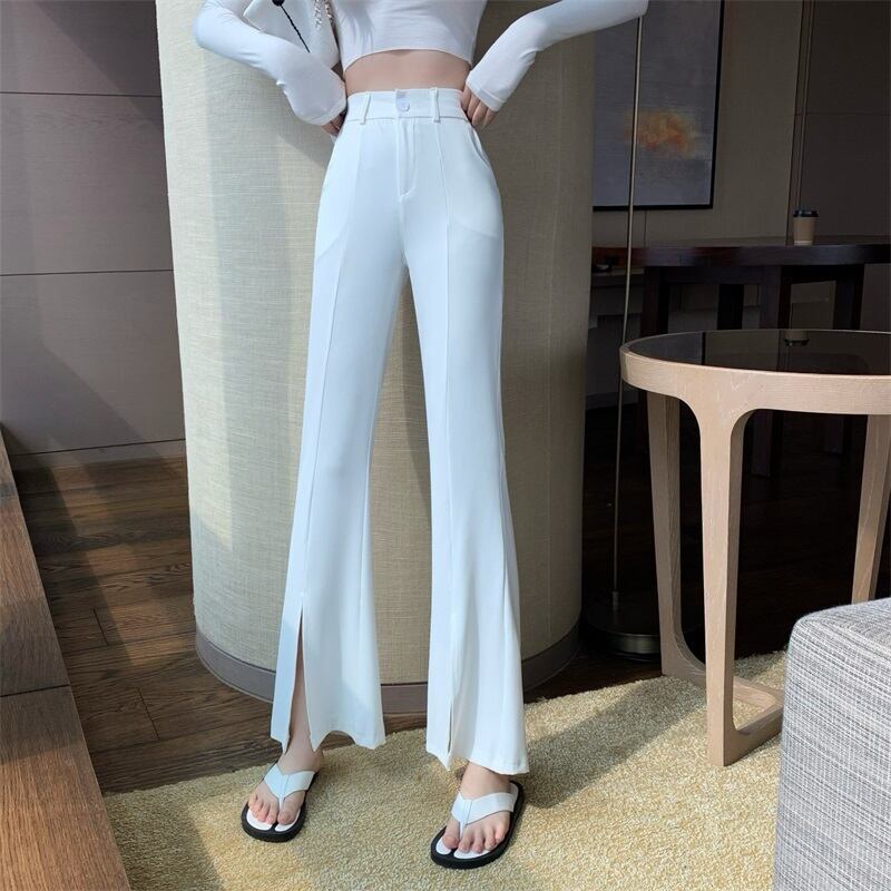 カジュアルパンツ サマー薄手ハイウェストホワイト レッド 夏物 ナナファッション97555348903