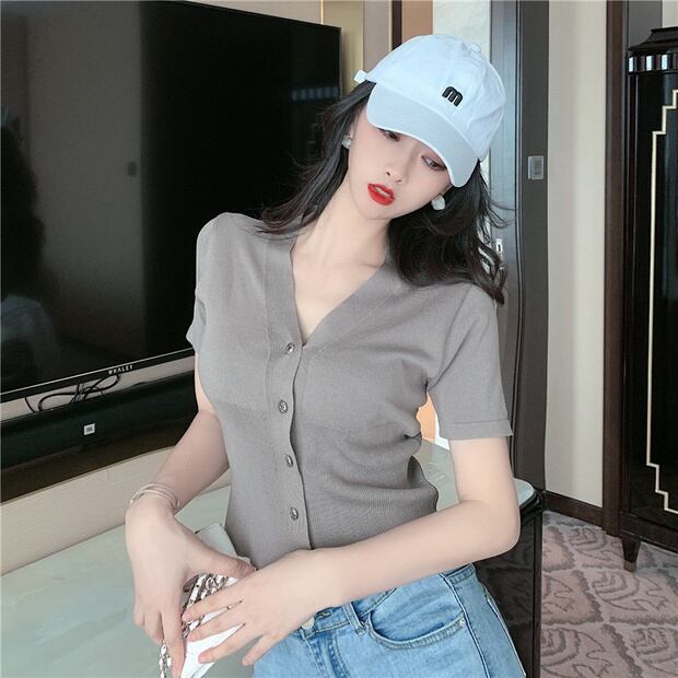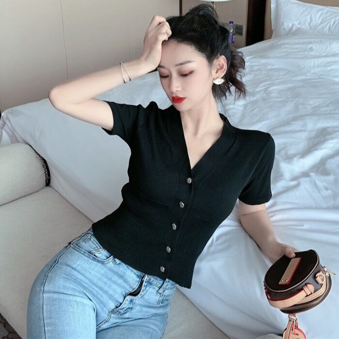 セーター スプリングサマースリムVネックシャツ トップス 春物 夏物 ナナファッション5504528856