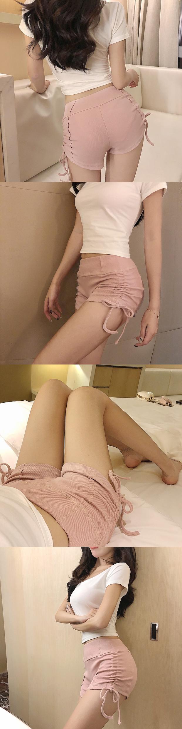 サマーニットレッドショーツ 薄手ブラックハイウェストウェストルーズパンツ 夏物 ブルマー ナナファッション84637871723
