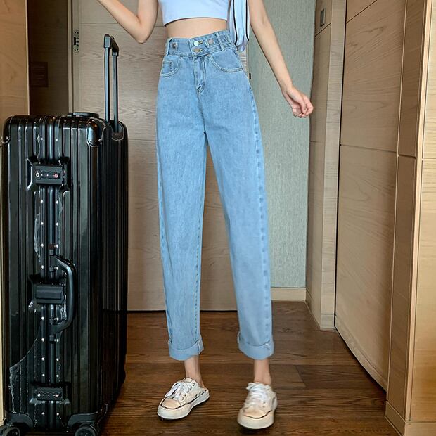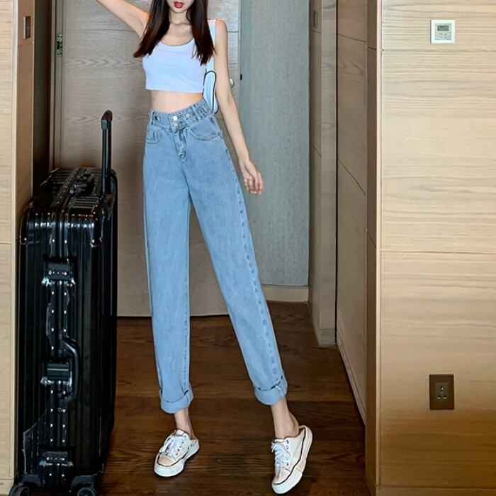ジーンズ サマースタイルルーズハイウェスト薄手ロングパンツ レッド 夏物 ナナファッション36786814920