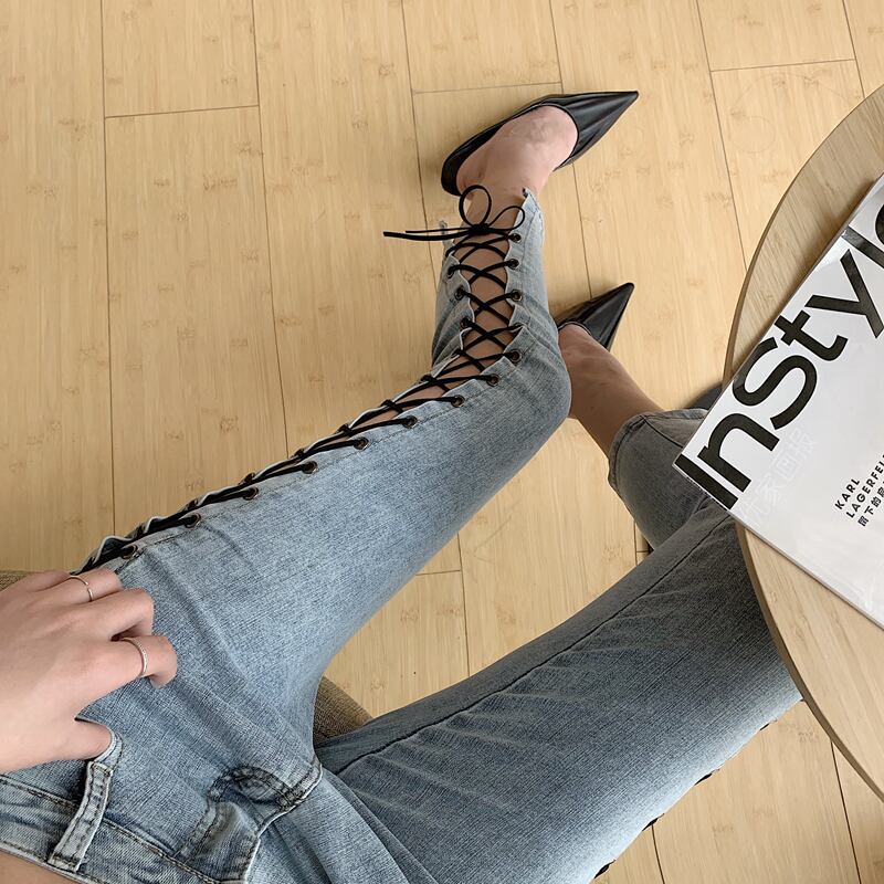 サマー薄手ジーンズ ハイウェストウェストクロップドパンツ 夏物 ナナファッション66833036934
