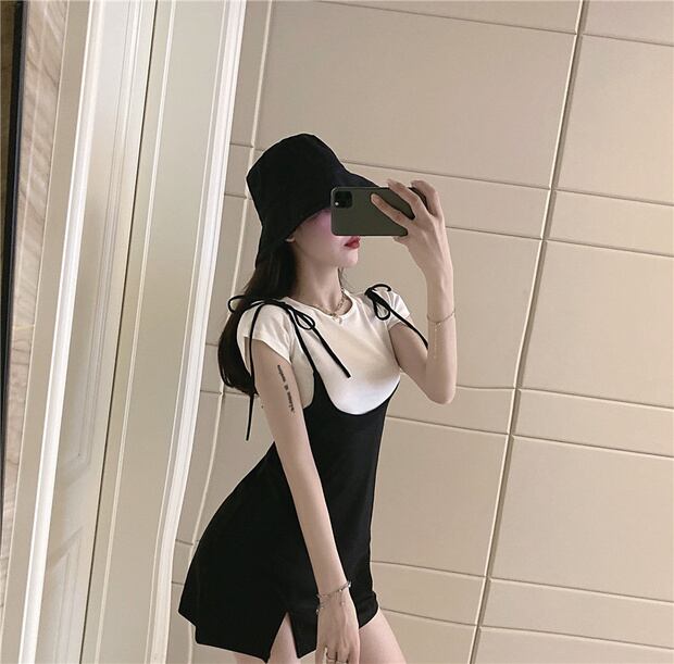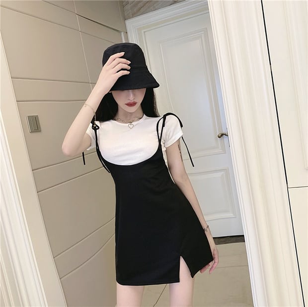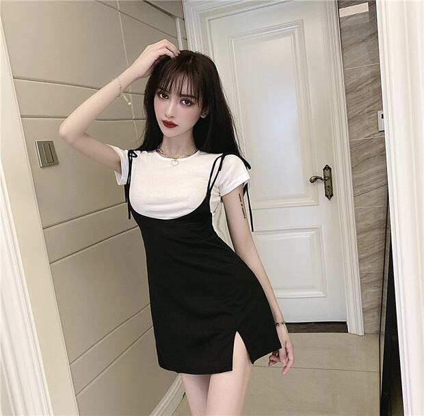 色:ショートホワイトT+ブラックドレス,ロングホワイトT+ブラックドレス