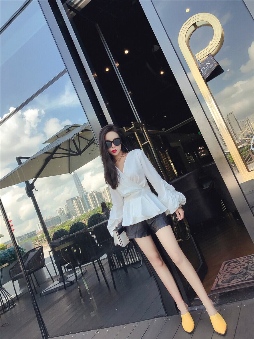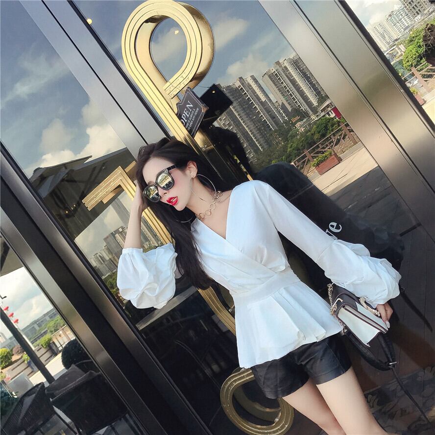スプリングVネックウェストシャツ トップス ホワイトレディース ロング 春物 ナナファッション57011262477