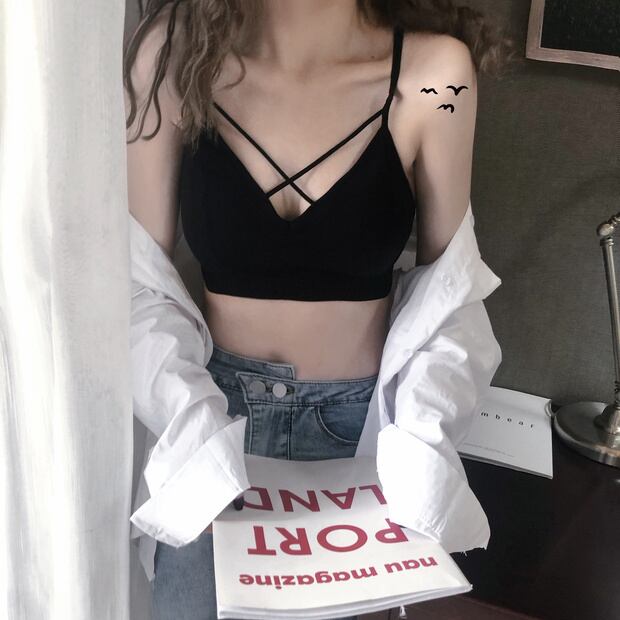 バックレッドブラ クロスブラックトップス ナナファッション55236099285