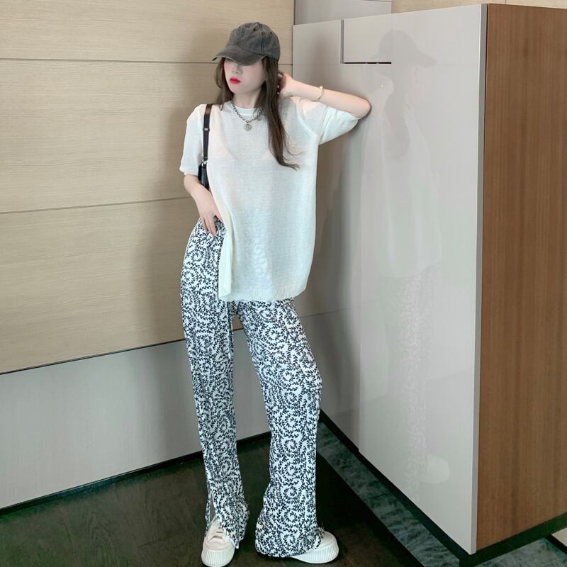 サマーニットTシャツ パンツ レディース ストリート 夏物 シルク ナナファッション36365719946