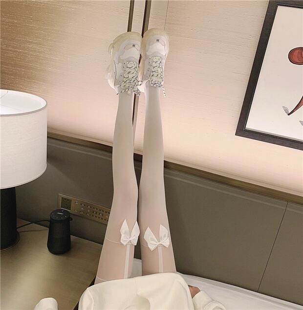 リボンソックス ストッキング ホワイト薄手 タイツ シルク ナナファッション44933879009