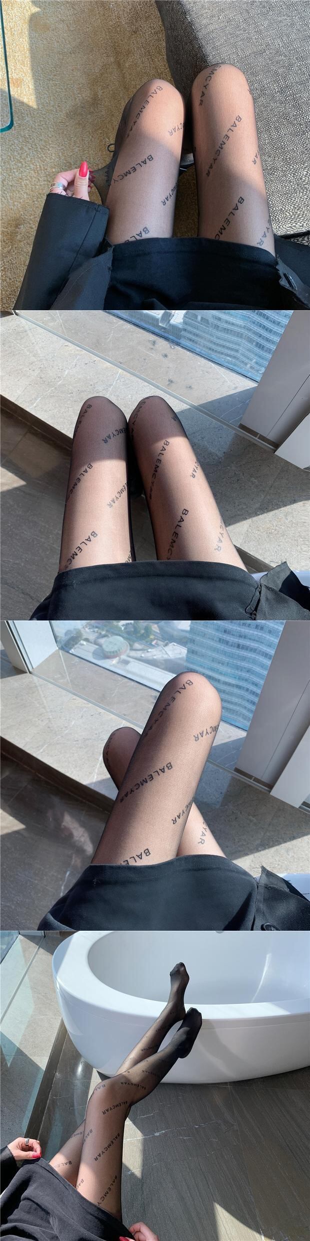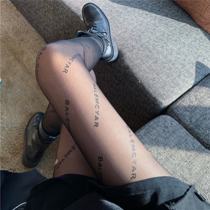 レッドブラックストッキング 薄手プリント柄 タイツ ソックス ナナファッション5712063335
