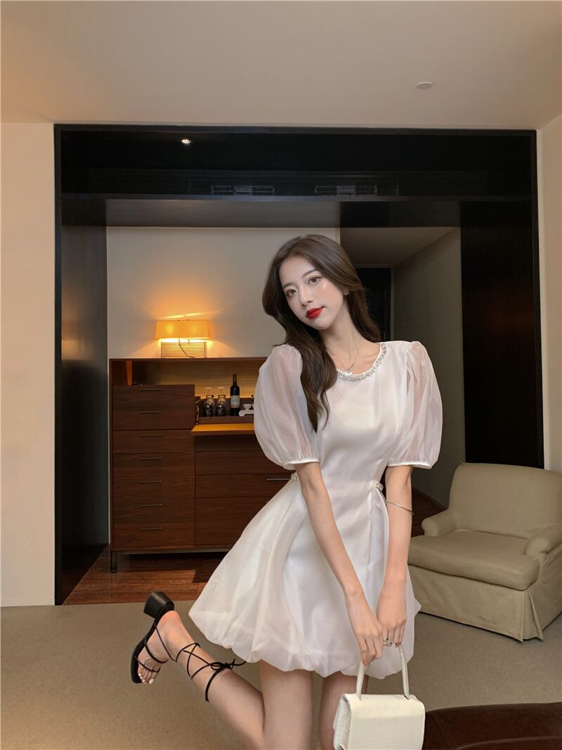 メッシュスリーブスカート サマーウェストAラインショートドレス ストリート 夏物 ナナファッション84545329792