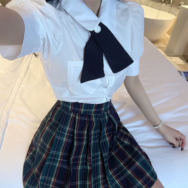 シャツサマースタイルスリーブホワイト リボン 夏物 ナナファッション32762728507