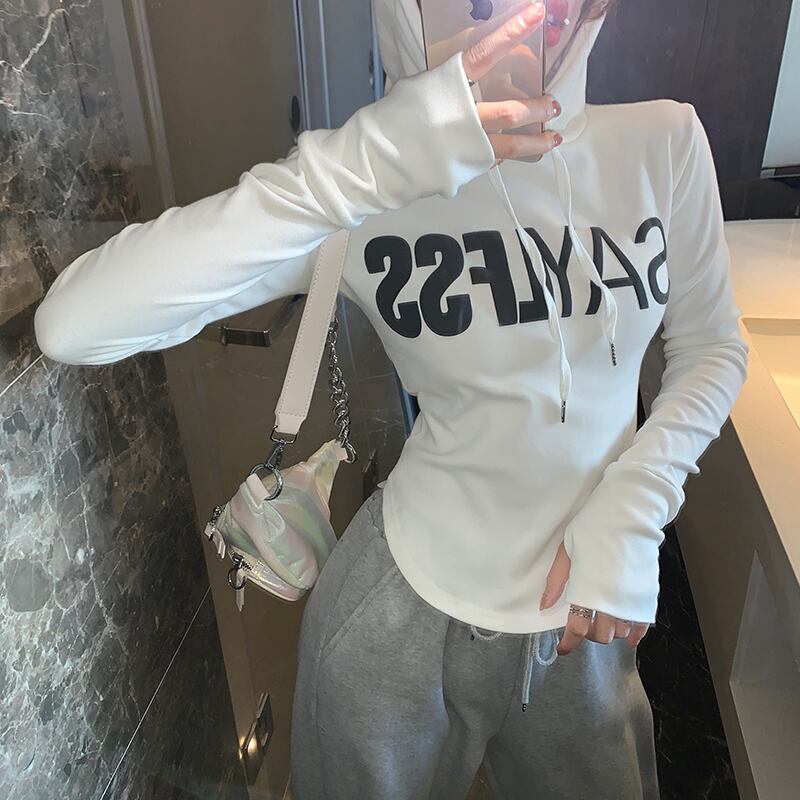 スプリングスリムスタイルホワイトトップス ロング 春物 Tシャツ ナナファッション84552071560
