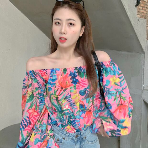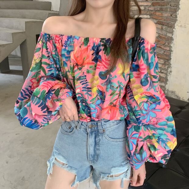 フローラルシャツ サマー薄手スリーブトップス ロング ランタンスリーブ 大人ガーリー スウィート キュート カジュアル 夏物 花柄 ナナファッション83577938348