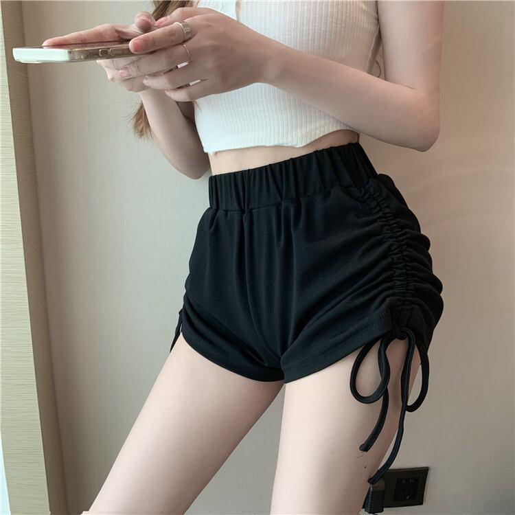 パンツ サマー薄手ハイウェストウェストギャザーショーツ ブラックルーズカジュアル 夏物 ブルマー ナナファッション60316761013