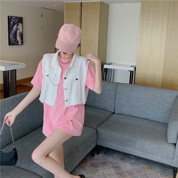 色:青いTシャツ,ピンクのTシャツ,カウボーイベスト