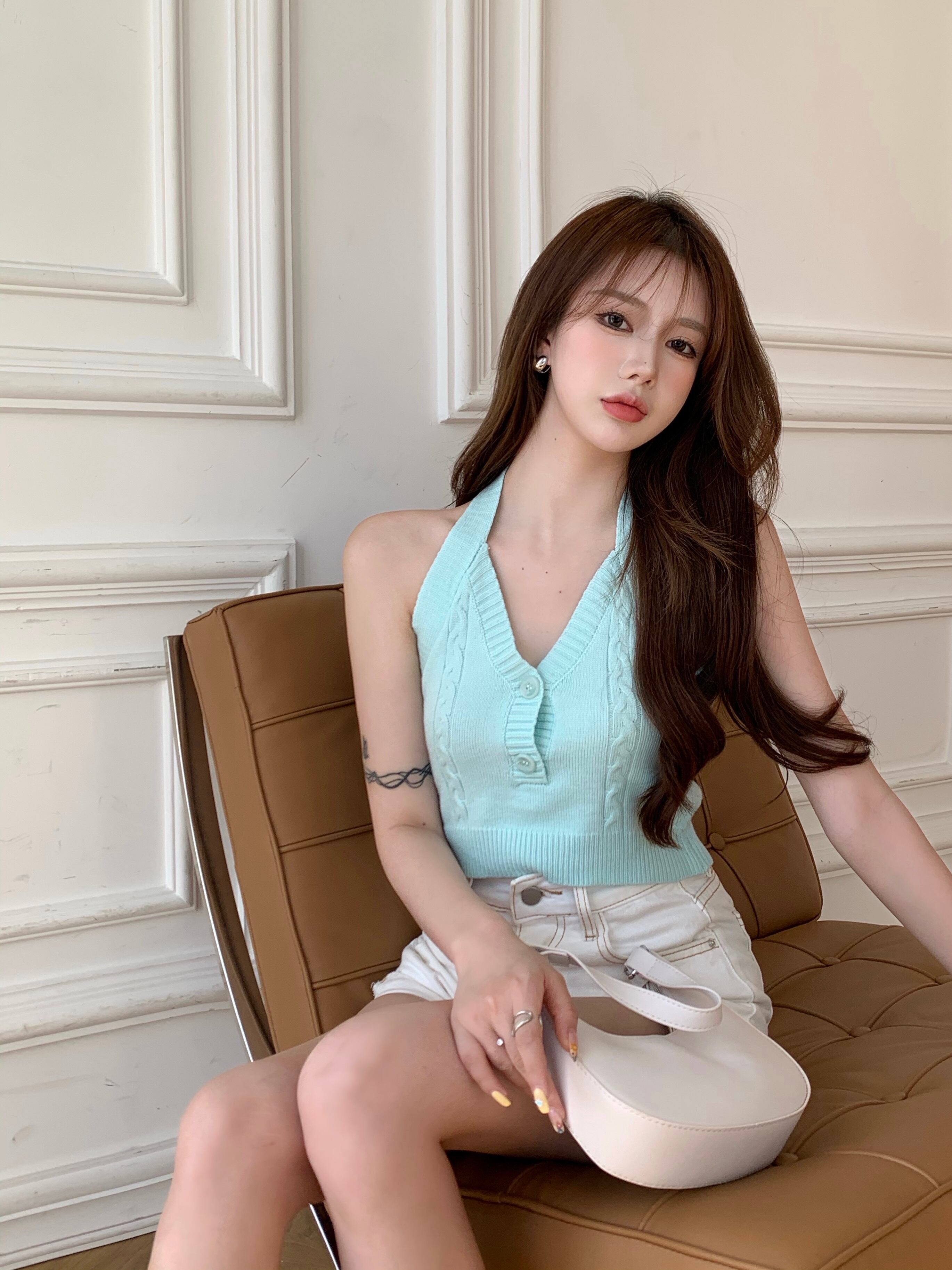 スタンダード薄手ホルターニットショートサマーブラウス レディース レトロ 大人ガーリー スウィート キュート カジュアル 夏物 ピュア ナナファッション2810638333