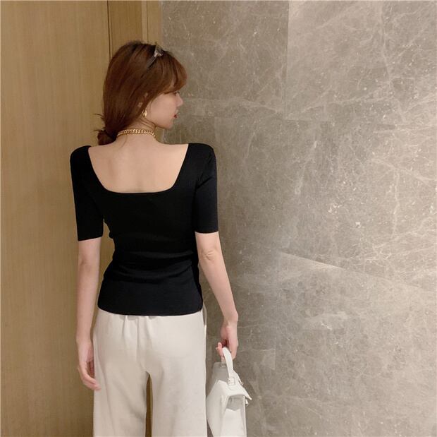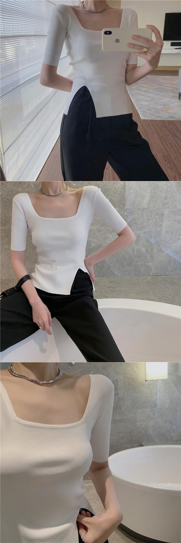 薄手ニットセーター サマースリムサイドスリットTシャツ トップス 夏物 スクウェア ナナファッション98785203825