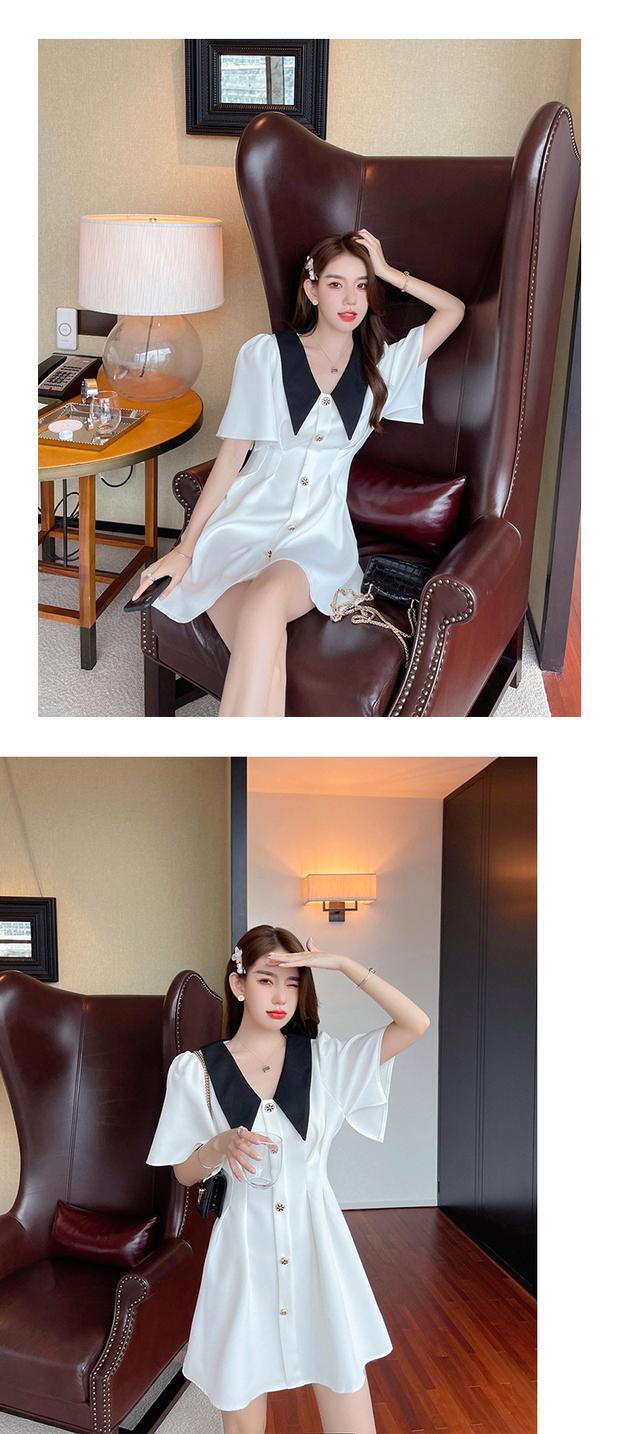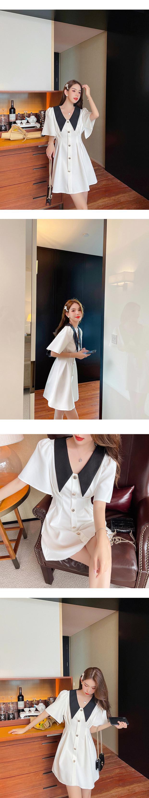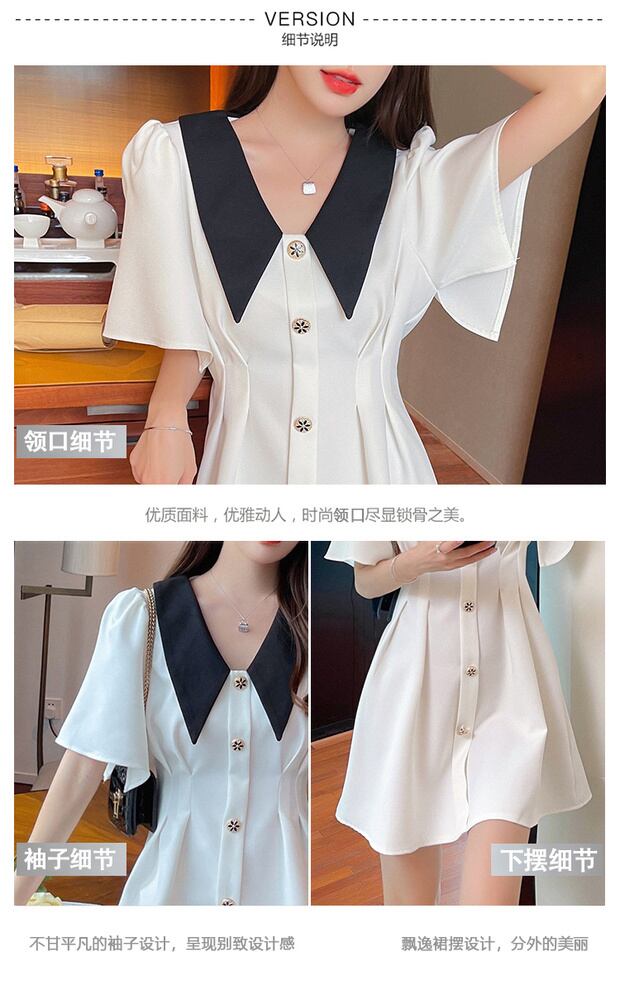 スタンダードカラーショートドレス サマーAラインスカート レトロ 夏物 ナナファッション23835672368