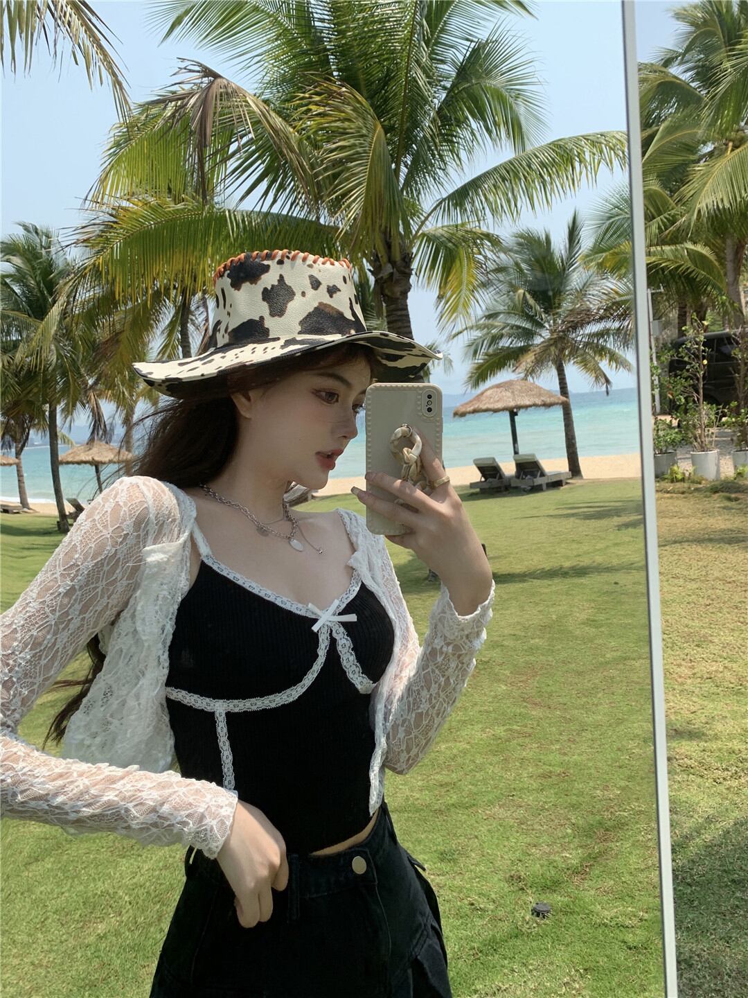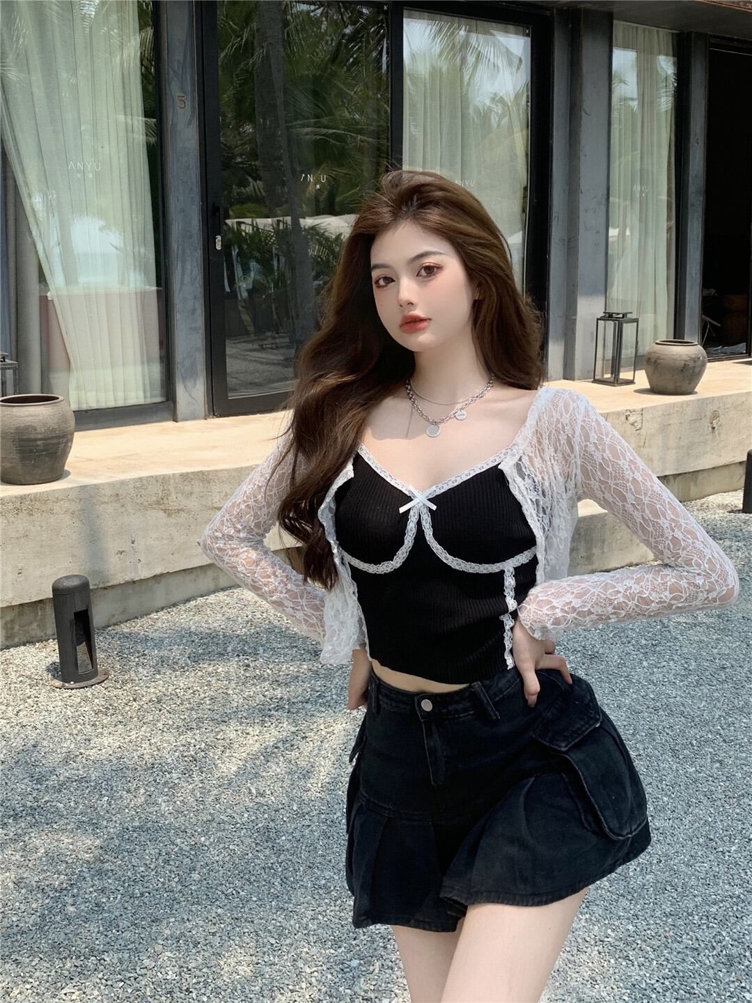 レッドサマーレースカーディガンジャケット ストリート 夏物 ナナファッション28194824143
