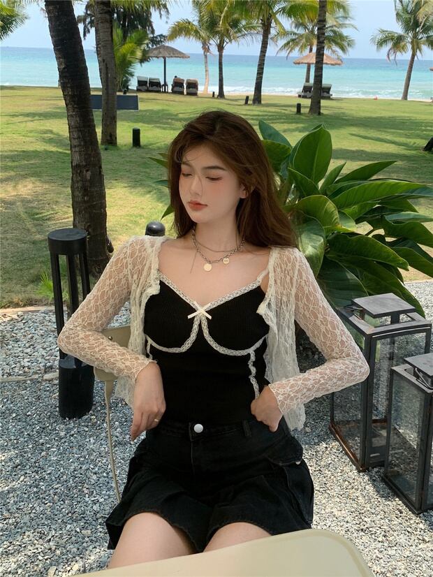 色:ブラックストラップ+レースカーディガン,スリング,カーディガン