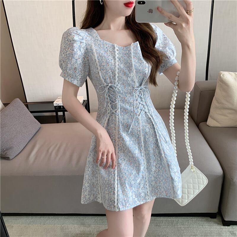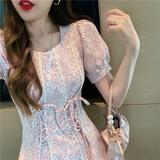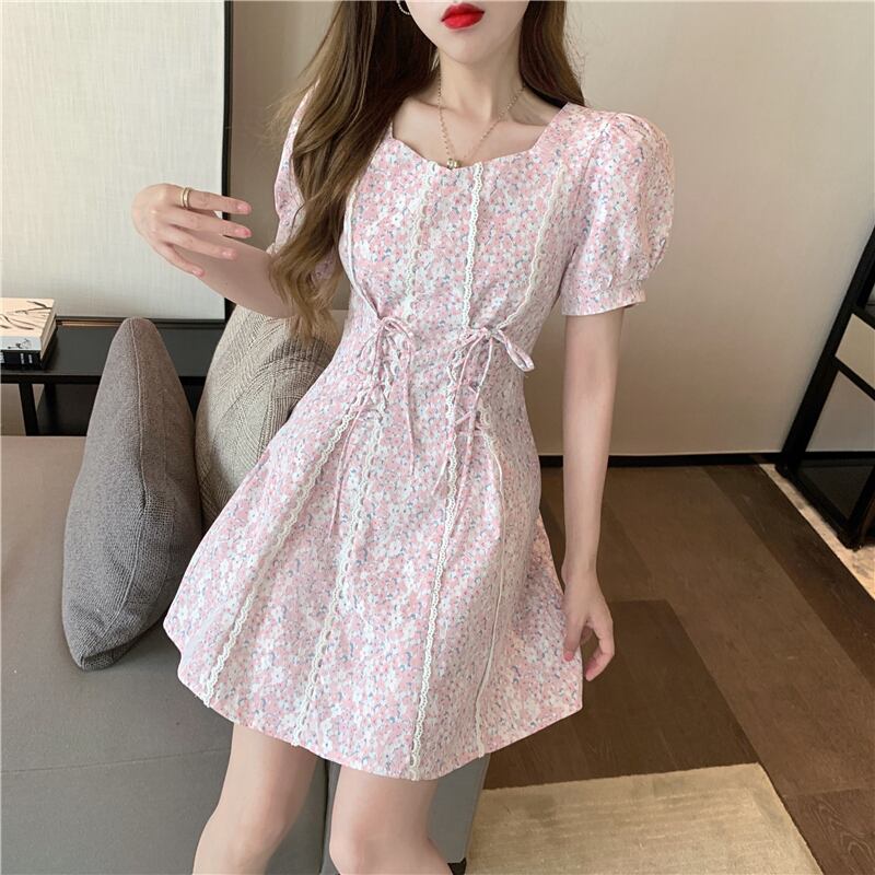 フローラルレースドレス サマースタイルウェストAラインショートスカート 夏物 花柄 ナナファッション26199988031